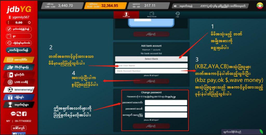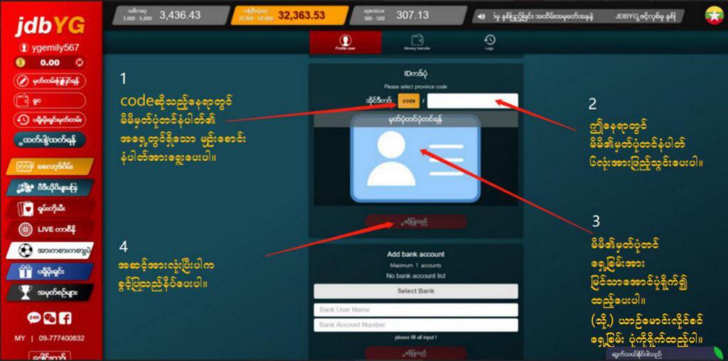 (1) မိမိရဲ႕ Level(1) အေကာင့္ထဲရွိ ” မိမိမွတ္တမ္း ” ဆိုေသာေနရာကိုဝင္ပါ(2) ကိုယ္ပိုင္မွတ္ပံုတင္နံပါတ္ျဖည့္ပါ(3) ကိုယ္ပိုင္မွတ္ပံုတင္ေရွ႕ျခမ္းကိုျမင္သာေအာင္ ပံုရိုက္ၿပီးထည့္ပါ(4) CB, KBZ, KBZ Pay, AYA, Wave Money, OK$ စသည့္ဘဏ္မ်ားထဲမွ မိမိအသံုးျပဳမယ့္ကိုယ္ပိုင္ဘဏ္အေကာင့္တစ္ခုကိုထည့္သြင္းပါ